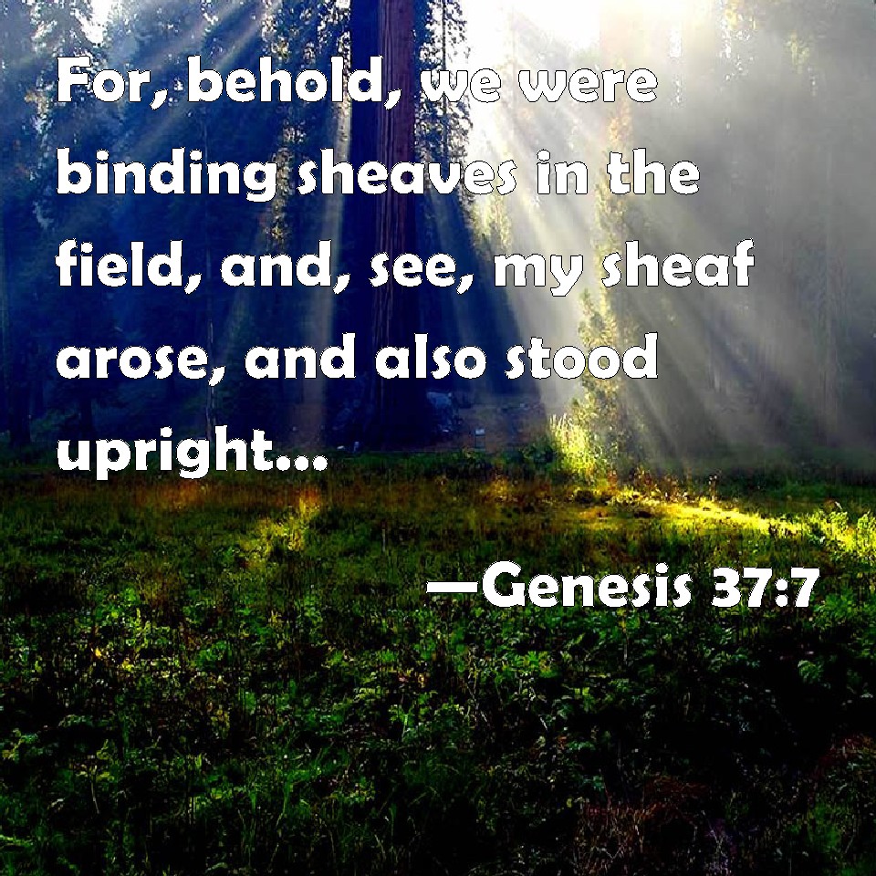 Choose a Background Genesis 37:7 For, behold, we were binding sheaves in the field, and, see, my sheaf arose, and also stood upright; and, behold, your sheaves stood round about, and made obeisance to my sheaf. KJV: For, behold, we were binding sheaves in the field, and, lo, my sheaf arose, and also stood upright; and, behold, your sheaves stood round about, and made obeisance to my sheaf. DRB: I thought we were binding sheaves in the field: and my sheaf arose as it were, end stood, and your sheaves standing about, bowed down before my sheaf. DBT: Behold, we were binding sheaves in the fields, and lo, my sheaf rose up, and remained standing; and behold, your sheaves came round about and bowed down to my sheaf. ERV: for, behold, we were binding sheaves in the field, and, lo, my sheaf arose, and also stood upright; and, behold, your sheaves came round about, and made obeisance to my sheaf. WBT: For behold, we were binding sheaves in the field, and lo, my sheaf arose, and also stood upright; and behold, your sheaves stood around and made obeisance to my sheaf. WEB: for behold, we were binding sheaves in the field, and behold, my sheaf arose and also stood upright; and behold, your sheaves came around, and bowed down to my sheaf." YLT: that, lo, we are binding bundles in the midst of the field, and lo, my bundle hath arisen, and hath also stood up, and lo, your bundles are round about, and bow themselves to my bundle.'Links Genesis 37:7 NIV • Genesis 37:7 NLT • Genesis 37:7 ESV • Genesis 37:7 NASB • Genesis 37:7 KJV • Genesis 37:7 Interlinear • Genesis 37:7 Commentaries • Genesis 37:7 Parallel Texts • Genesis 37:7 Bible Apps • Genesis 37:7 Parallel • Bible Hub |