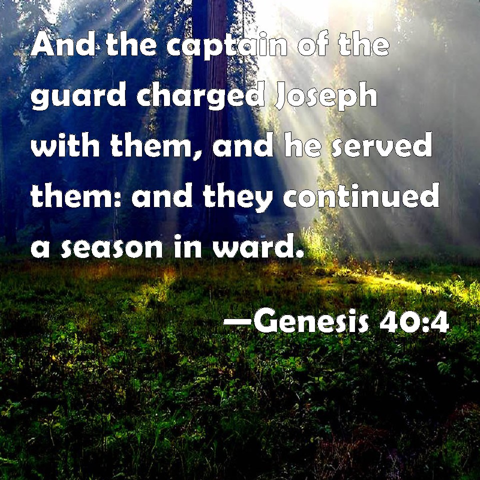 Genesis 40:4 And the captain of the guard charged Joseph with them, and he served them: and they continued a season in ward.