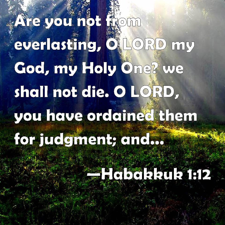 Choose a Background Habakkuk 1:12 Are you not from everlasting, O LORD my God, my Holy One? we shall not die. O LORD, you have ordained them for judgment; and, O mighty God, you have established them for correction. KJV: Art thou not from everlasting, O LORD my God, mine Holy One? we shall not die. O LORD, thou hast ordained them for judgment; and, O mighty God, thou hast established them for correction. DRB: Wast thou not from the beginning, O Lord my God, my holy one, and we shall not die? Lord, thou hast appointed him for judgment: and made him strong for correction. DBT: Art thou not from everlasting, Jehovah my God, my Holy One? We shall not die. Jehovah, thou hast ordained him for judgment; and thou, O Rock, hast appointed him for correction. ERV: Art not thou from everlasting, O LORD my God, mine Holy One? we shall not die. O LORD, thou hast ordained him for judgment; and thou, O Rock, hast established him for correction. WBT: Art thou not from everlasting, O LORD my God, my Holy One? We shall not die. O LORD, thou hast ordained them for judgment; and O mighty God, thou hast established them for correction. WEB: Aren't you from everlasting, Yahweh my God, my Holy One? We will not die. Yahweh, you have appointed him for judgment. You, Rock, have established him to punish. YLT: Art not Thou of old, O Jehovah, my God, my Holy One? We do not die, O Jehovah, For judgment Thou hast appointed it, And, O Rock, for reproof Thou hast founded it.Links Habakkuk 1:12 NIV • Habakkuk 1:12 NLT • Habakkuk 1:12 ESV • Habakkuk 1:12 NASB • Habakkuk 1:12 KJV • Habakkuk 1:12 Interlinear • Habakkuk 1:12 Commentaries • Habakkuk 1:12 Parallel Texts • Habakkuk 1:12 Bible Apps • Habakkuk 1:12 Parallel • Bible Hub |