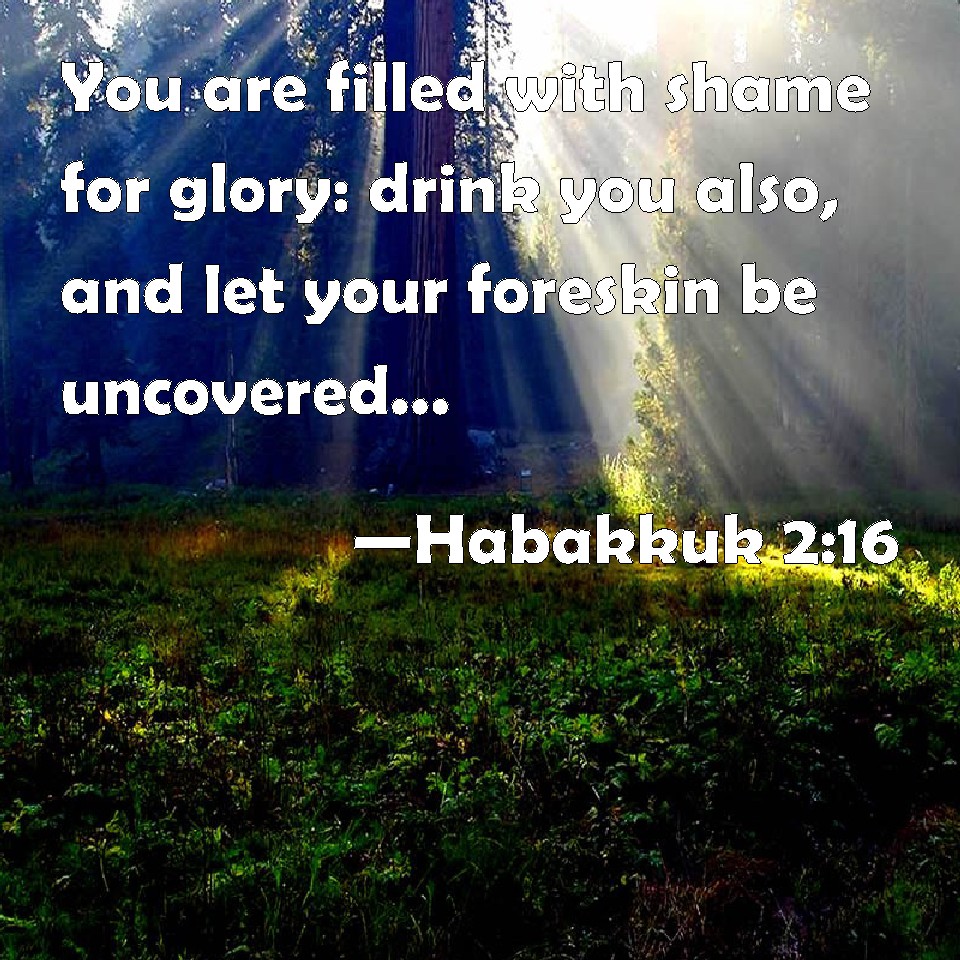 Choose a Background Habakkuk 2:16 You are filled with shame for glory: drink you also, and let your foreskin be uncovered: the cup of the LORD's right hand shall be turned to you, and shameful spewing shall be on your glory. KJV: Thou art filled with shame for glory: drink thou also, and let thy foreskin be uncovered: the cup of the LORD'S right hand shall be turned unto thee, and shameful spewing shall be on thy glory. DRB: Thou art filled with shame instead of glory: drink thou also, and fall fast asleep: the cup of the right hand of the Lord shall compass thee, and shameful vomiting shall be on thy glory. DBT: Thou art filled with shame instead of glory; drink thou also, and let thy foreskin be uncovered: the cup of Jehovah's right hand shall be turned unto thee, and a shameful spewing shall be on thy glory. ERV: Thou art filled with shame for glory: drink thou also, and be as one uncircumcised: the cup of the LORD'S right hand shall be turned unto thee, and foul shame shall be upon thy glory. WBT: Thou art filled with shame for glory: drink thou also, and let thy foreskin be uncovered: the cup of the LORD'S right hand shall be turned to thee, and shameful vomiting shall be on thy glory. WEB: You are filled with shame, and not glory. You will also drink, and be exposed! The cup of Yahweh's right hand will come around to you, and disgrace will cover your glory. YLT: Thou hast been filled — shame without honour, Drink thou also, and be uncircumcised, Turn round unto thee doth the cup of the right hand of Jehovah, And shameful spewing is on thine honour.Links Habakkuk 2:16 NIV • Habakkuk 2:16 NLT • Habakkuk 2:16 ESV • Habakkuk 2:16 NASB • Habakkuk 2:16 KJV • Habakkuk 2:16 Interlinear • Habakkuk 2:16 Commentaries • Habakkuk 2:16 Parallel Texts • Habakkuk 2:16 Bible Apps • Habakkuk 2:16 Parallel • Bible Hub |