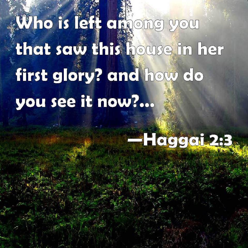 Haggai 2:3 Who is left among you that saw this house in her first glory? and how do you see it now? is it not in your eyes in comparison of it as nothing?