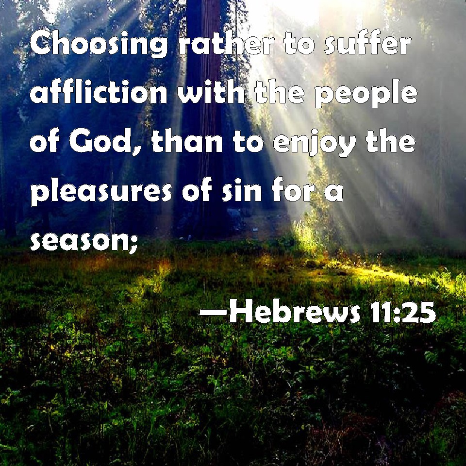 Hebrews 11:25 Choosing rather to suffer affliction with the people of God, than to enjoy the pleasures of sin for a season;