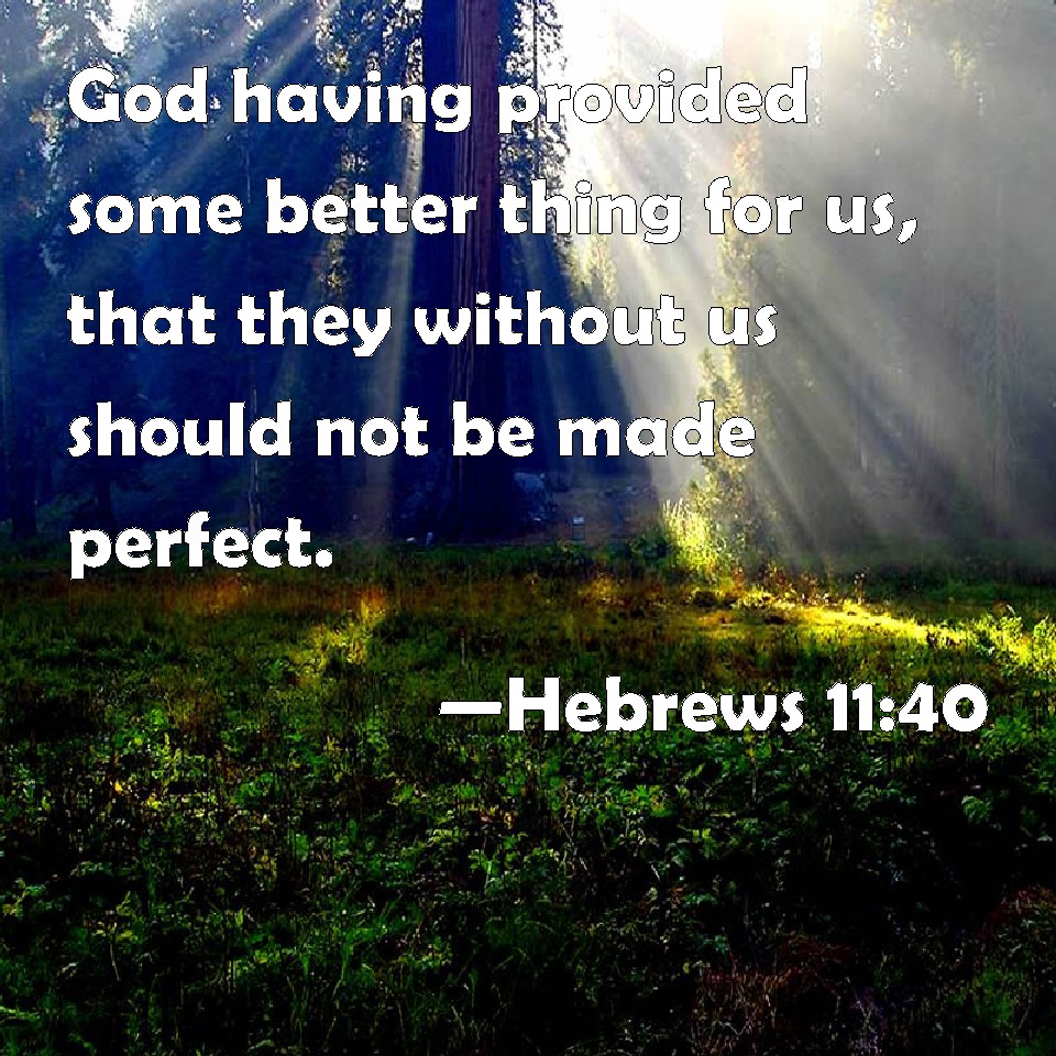 Hebrews 11:40 God having provided some better thing for us, that they without us should not be made perfect.