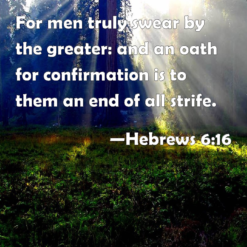 Hebrews 6:16 For men truly swear by the greater: and an oath for confirmation is to them an end of all strife.