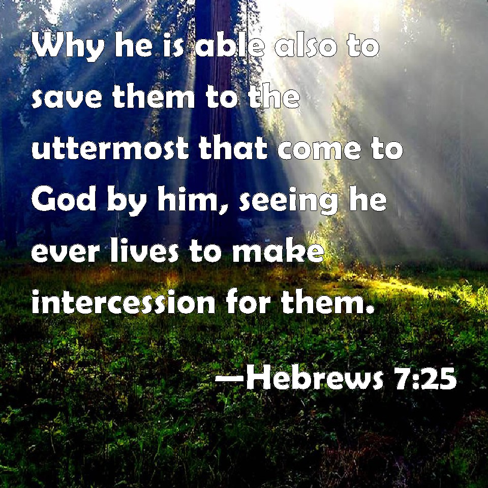 Hebrews 7:25 Why he is able also to save them to the uttermost that come to God by him, seeing he ever lives to make intercession for them.