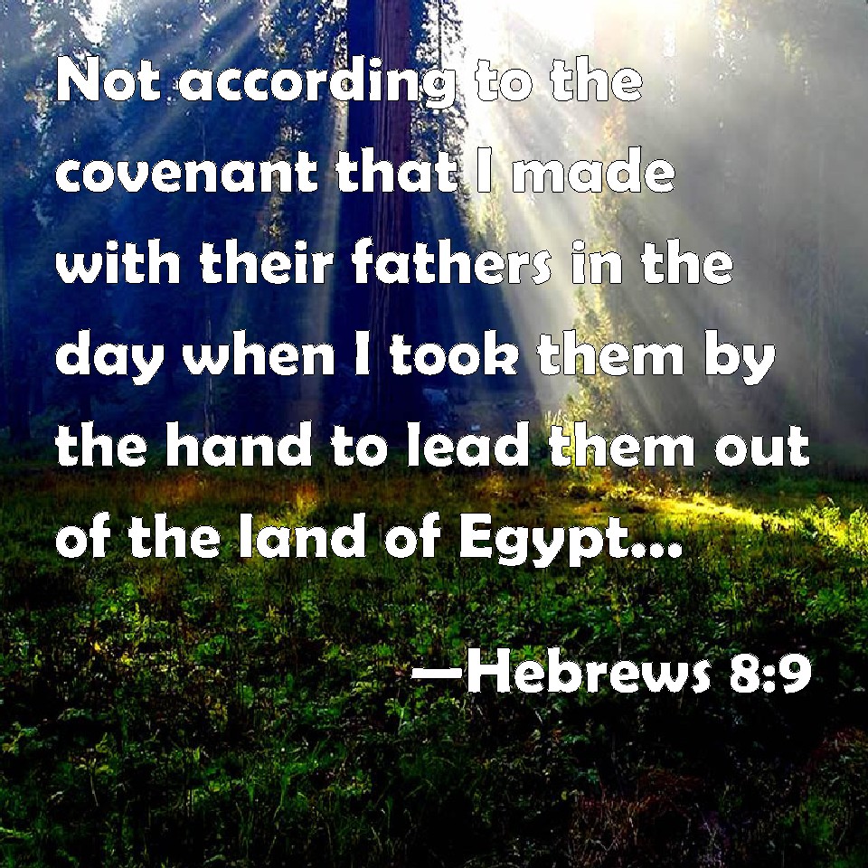 Choose a Background Hebrews 8:9 Not according to the covenant that I made with their fathers in the day when I took them by the hand to lead them out of the land of Egypt; because they continued not in my covenant, and I regarded them not, said the Lord. KJV: Not according to the covenant that I made with their fathers in the day when I took them by the hand to lead them out of the land of Egypt; because they continued not in my covenant, and I regarded them not, saith the Lord. DRB: Not according to the testament which I made to their fathers, on the day when I took them by the hand to lead them out of the land of Egypt: because they continued not in my testament: and I regarded them not, saith the Lord. DBT: not according to the covenant which I made to their fathers in the day of my taking their hand to lead them out of the land of Egypt; because they did not continue in my covenant, and I did not regard them, saith the Lord. ERV: Not according to the covenant that I made with their fathers In the day that I took them by the hand to lead them forth out of the land of Egypt; For they continued not in my covenant, And I regarded them not, saith the Lord. WBT: Not according to the covenant that I made with their fathers, in the day when I took them by the hand to lead them out of the land of Egypt; because they continued not in my covenant, and I regarded them not, saith the Lord. WEB: not according to the covenant that I made with their fathers, in the day that I took them by the hand to lead them out of the land of Egypt; for they didn't continue in my covenant, and I disregarded them," says the Lord. YLT: not according to the covenant that I made with their fathers, in the day of My taking them by their hand, to bring them out of the land of Egypt — because they did not remain in My covenant, and I did not regard them, saith the Lord, — Links Hebrews 8:9 NIV • Hebrews 8:9 NLT • Hebrews 8:9 ESV • Hebrews 8:9 NASB • Hebrews 8:9 KJV • Hebrews 8:9 Interlinear • Hebrews 8:9 Commentaries • Hebrews 8:9 Parallel Texts • Hebrews 8:9 Bible Apps • Hebrews 8:9 Parallel • Bible Hub |