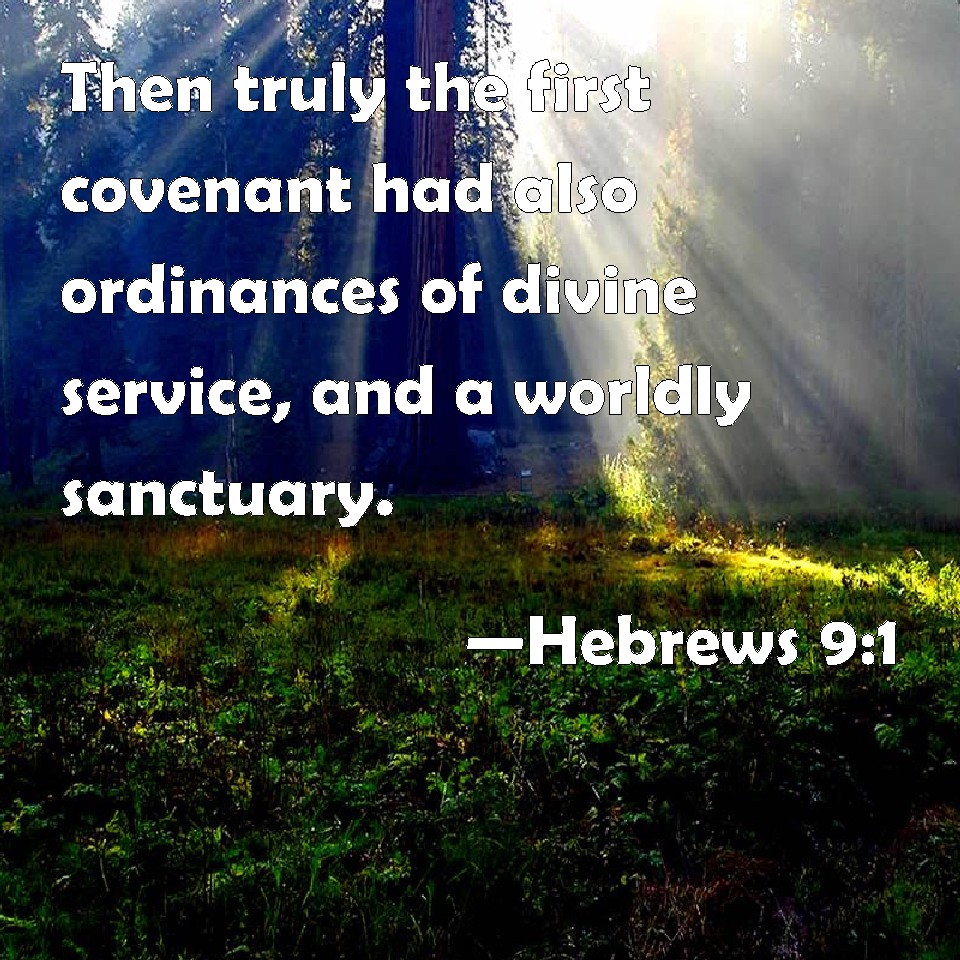 Choose a Background Hebrews 9:1 Then truly the first covenant had also ordinances of divine service, and a worldly sanctuary. KJV: Then verily the first covenant had also ordinances of divine service, and a worldly sanctuary. DRB: The former indeed had also justifications of divine service, and a worldly sanctuary. DBT: The first therefore also indeed had ordinances of service, and the sanctuary, a worldly one. ERV: Now even the first covenant had ordinances of divine service, and its sanctuary, a sanctuary of this world. WBT: Then verily the first covenant had also ordinances of divine service, and a worldly sanctuary. WEB: Now indeed even the first covenant had ordinances of divine service, and an earthly sanctuary. YLT: It had, indeed, then (even the first tabernacle) ordinances of service, also a worldly sanctuary,Links Hebrews 9:1 NIV • Hebrews 9:1 NLT • Hebrews 9:1 ESV • Hebrews 9:1 NASB • Hebrews 9:1 KJV • Hebrews 9:1 Interlinear • Hebrews 9:1 Commentaries • Hebrews 9:1 Parallel Texts • Hebrews 9:1 Bible Apps • Hebrews 9:1 Parallel • Bible Hub |