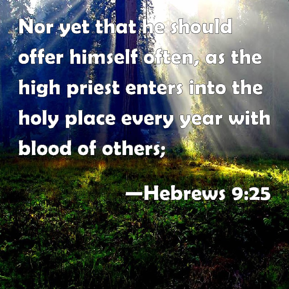 Hebrews 9:25 Nor yet that he should offer himself often, as the high priest enters into the holy place every year with blood of others;