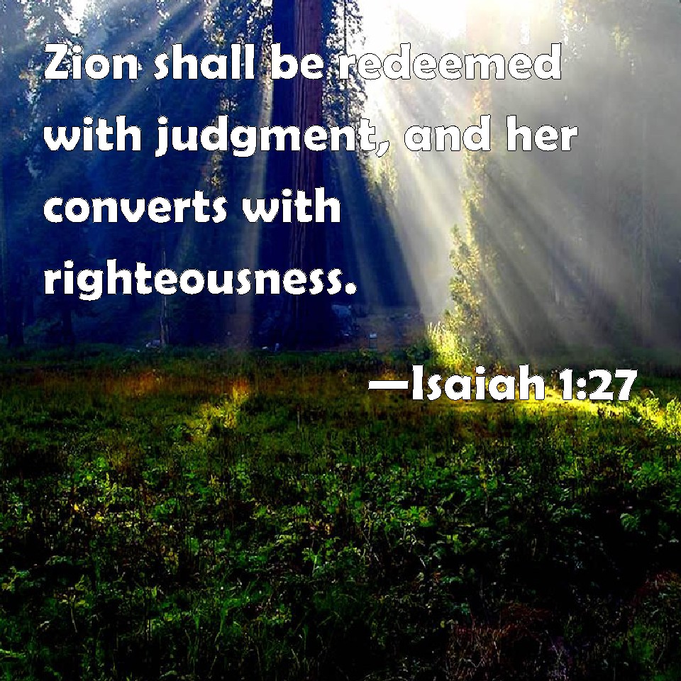 Isaiah 1:27 Zion shall be redeemed with judgment, and her converts with righteousness.