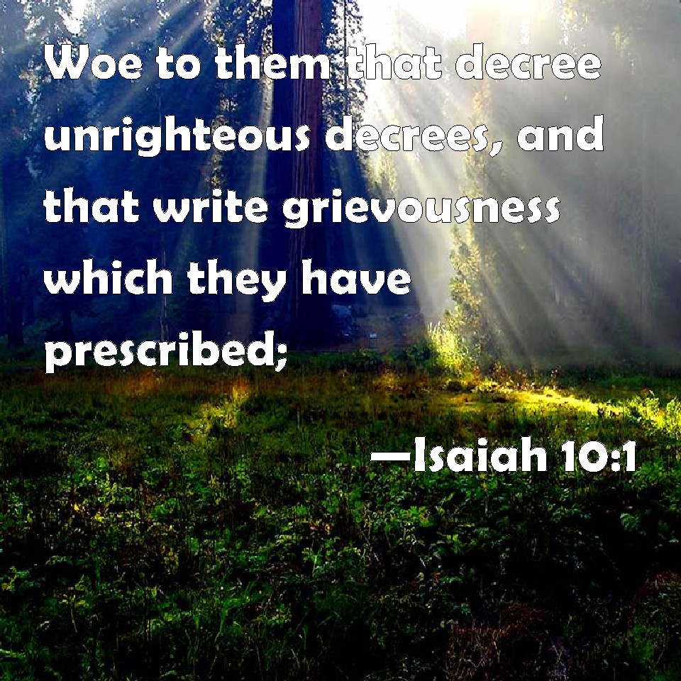 Isaiah 10:1 Woe to them that decree unrighteous decrees, and that write grievousness which they have prescribed;
