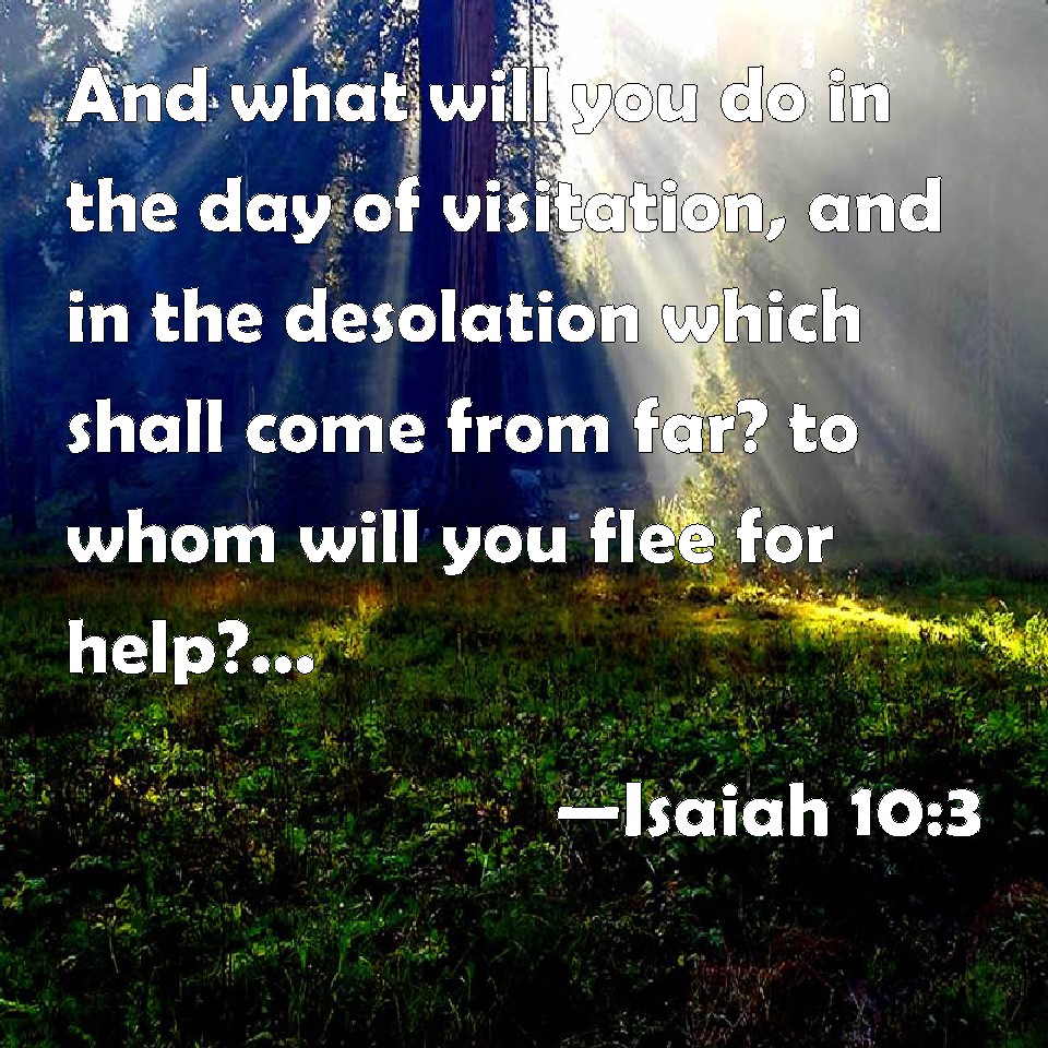 Isaiah 10:3 And what will you do in the day of visitation, and in the desolation which shall come from far? to whom will you flee for help? and where will you leave your glory?