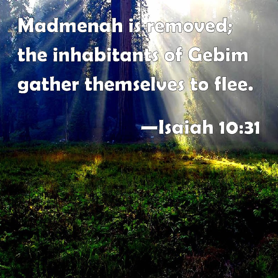 Isaiah 10:31 Madmenah is removed; the inhabitants of Gebim gather themselves to flee.