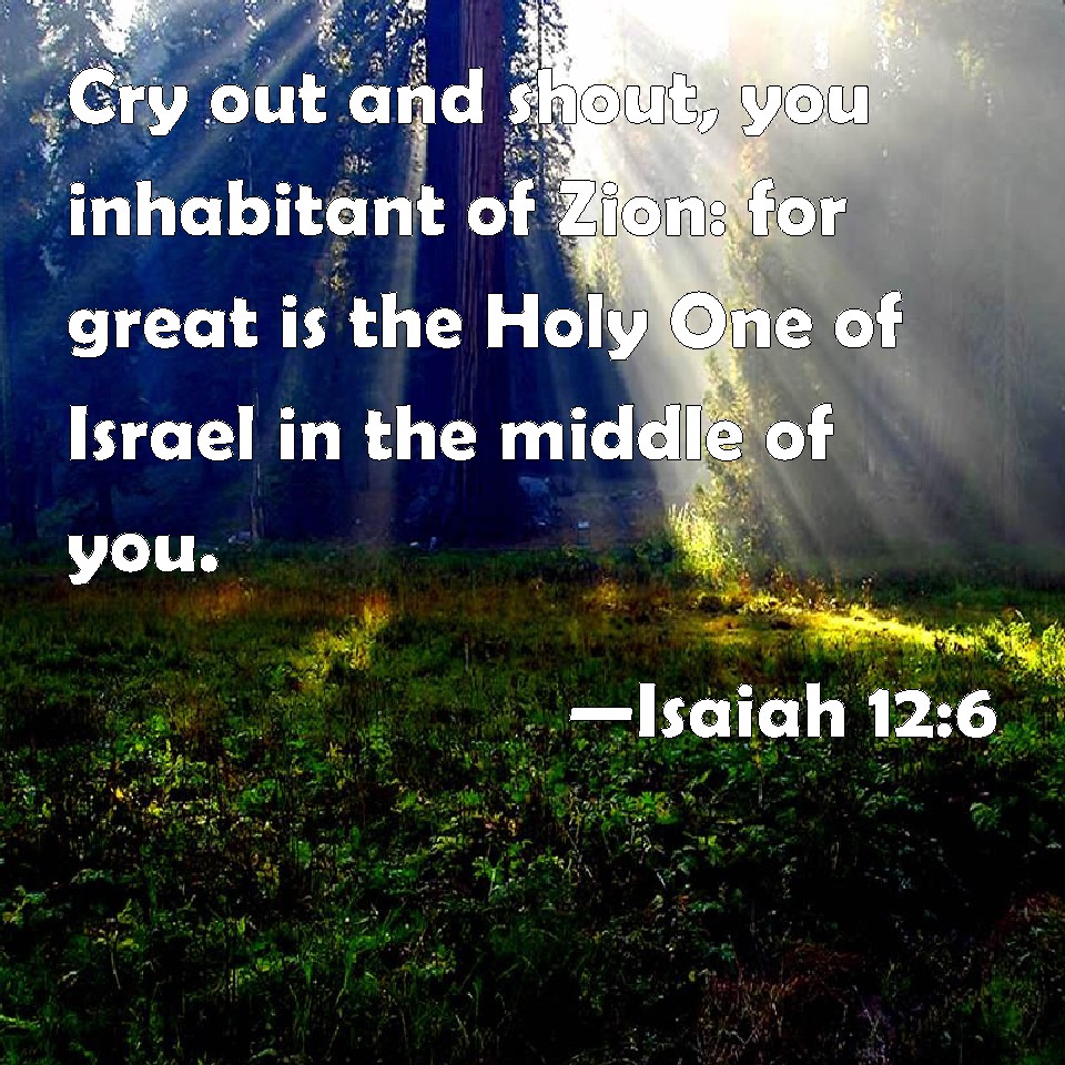 Choose a Background Isaiah 12:6 Cry out and shout, you inhabitant of Zion: for great is the Holy One of Israel in the middle of you. KJV: Cry out and shout, thou inhabitant of Zion: for great is the Holy One of Israel in the midst of thee. DRB: Rejoice, and praise, O thou habitation of Sion: for great is he that is in the midst of thee, the Holy One of Israel. DBT: Cry out and shout, thou inhabitress of Zion; for great is the Holy One of Israel in the midst of thee. ERV: Cry aloud and shout, thou inhabitant of Zion: for great is the Holy One of Israel in the midst of thee. WBT: Cry aloud and shout, thou inhabitant of Zion: for great is the Holy One of Israel in the midst of thee. WEB: Cry aloud and shout, you inhabitant of Zion; for the Holy One of Israel is great in the midst of you!" YLT: Cry aloud, and sing, O inhabitant of Zion, For great in thy midst is the Holy One of Israel!'Links Isaiah 12:6 NIV • Isaiah 12:6 NLT • Isaiah 12:6 ESV • Isaiah 12:6 NASB • Isaiah 12:6 KJV • Isaiah 12:6 Interlinear • Isaiah 12:6 Commentaries • Isaiah 12:6 Parallel Texts • Isaiah 12:6 Bible Apps • Isaiah 12:6 Parallel • Bible Hub |