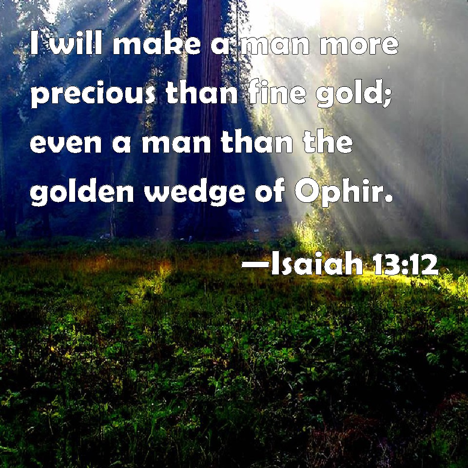 Isaiah 13:12 I will make a man more precious than fine gold; even a man than the golden wedge of Ophir.