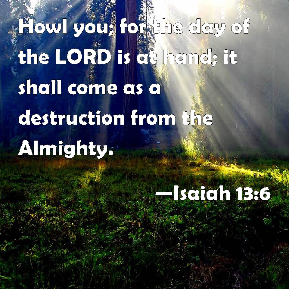 Isaiah 13:6 Howl you; for the day of the LORD is at hand; it shall come as a destruction from the Almighty.