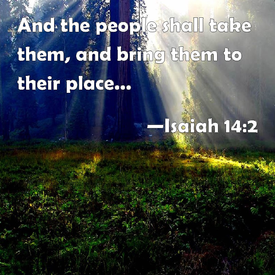 Isaiah 14:2 And the people shall take them, and bring them to their place: and the house of Israel shall possess them in the land of the LORD for servants and handmaids: and they shall take them captives, whose captives they were; and they shall rule over their oppressors.