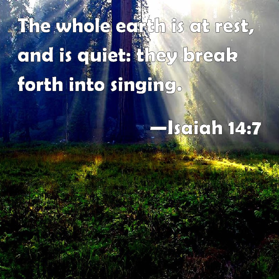 Isaiah 14:7 The whole earth is at rest, and is quiet: they break forth into singing.