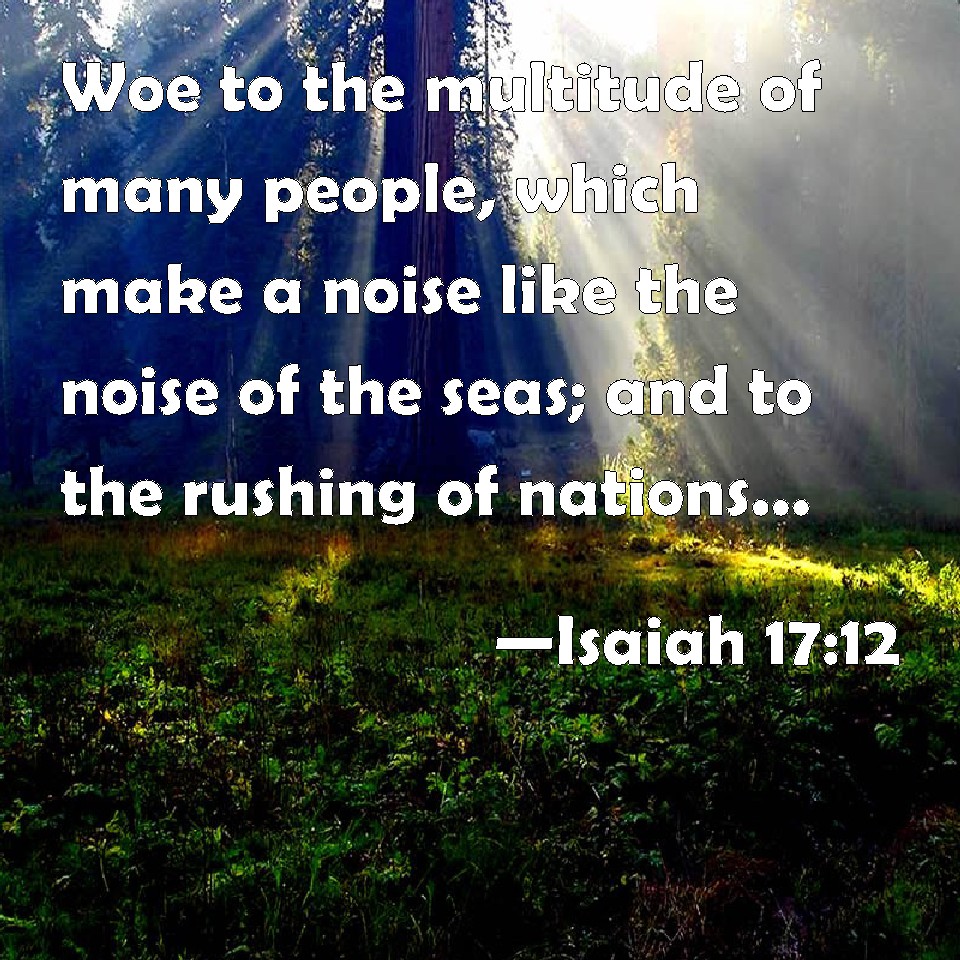Isaiah 17:12 Woe to the multitude of many people, which make a noise like the noise of the seas; and to the rushing of nations, that make a rushing like the rushing of mighty waters!