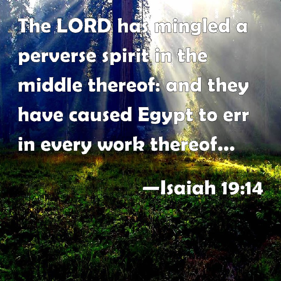 Isaiah 19:14 The LORD has mingled a perverse spirit in the middle thereof: and they have caused Egypt to err in every work thereof, as a drunken man staggers in his vomit.