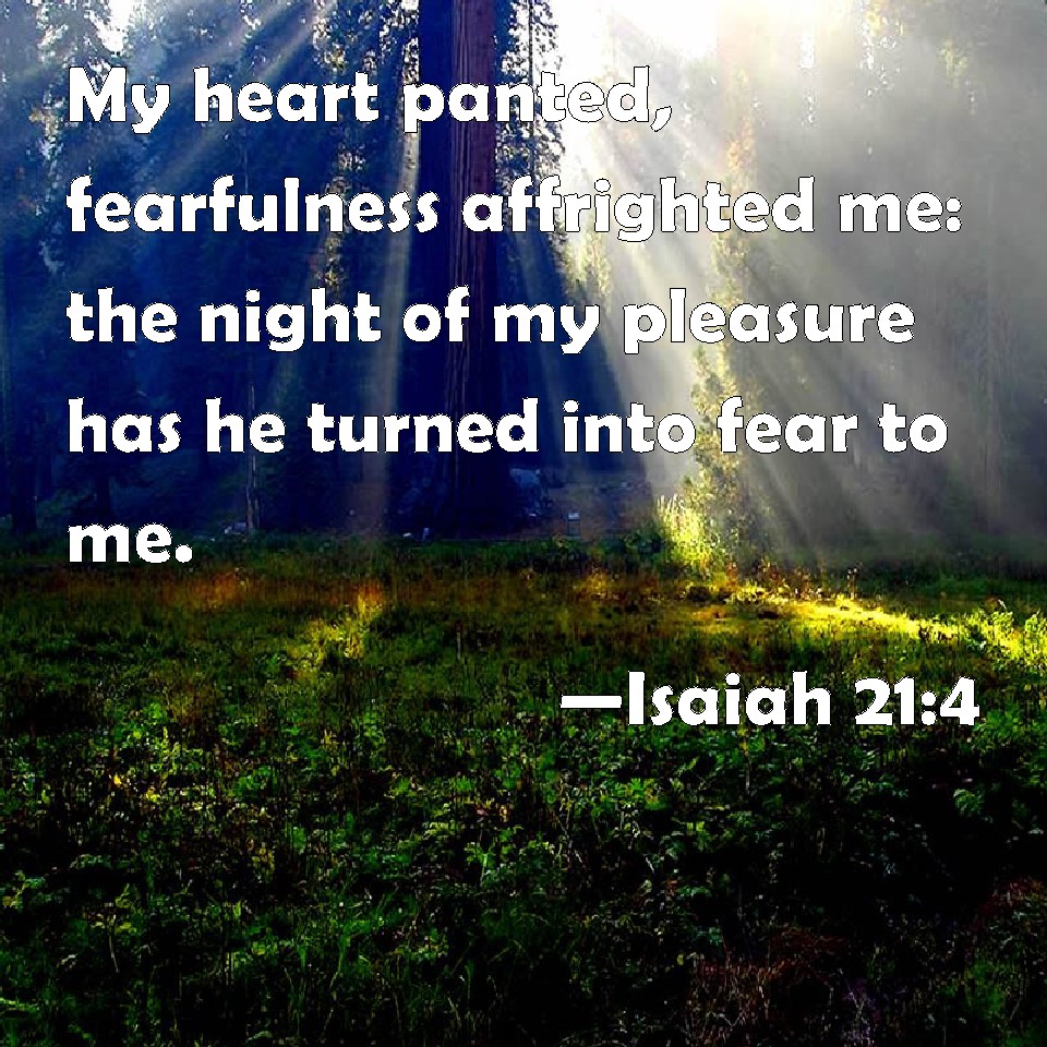 Isaiah 21:4 My heart panted, fearfulness affrighted me: the night of my pleasure has he turned into fear to me.