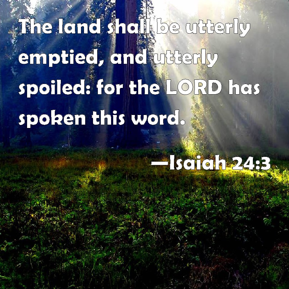 Isaiah 24:3 The land shall be utterly emptied, and utterly spoiled: for the LORD has spoken this word.