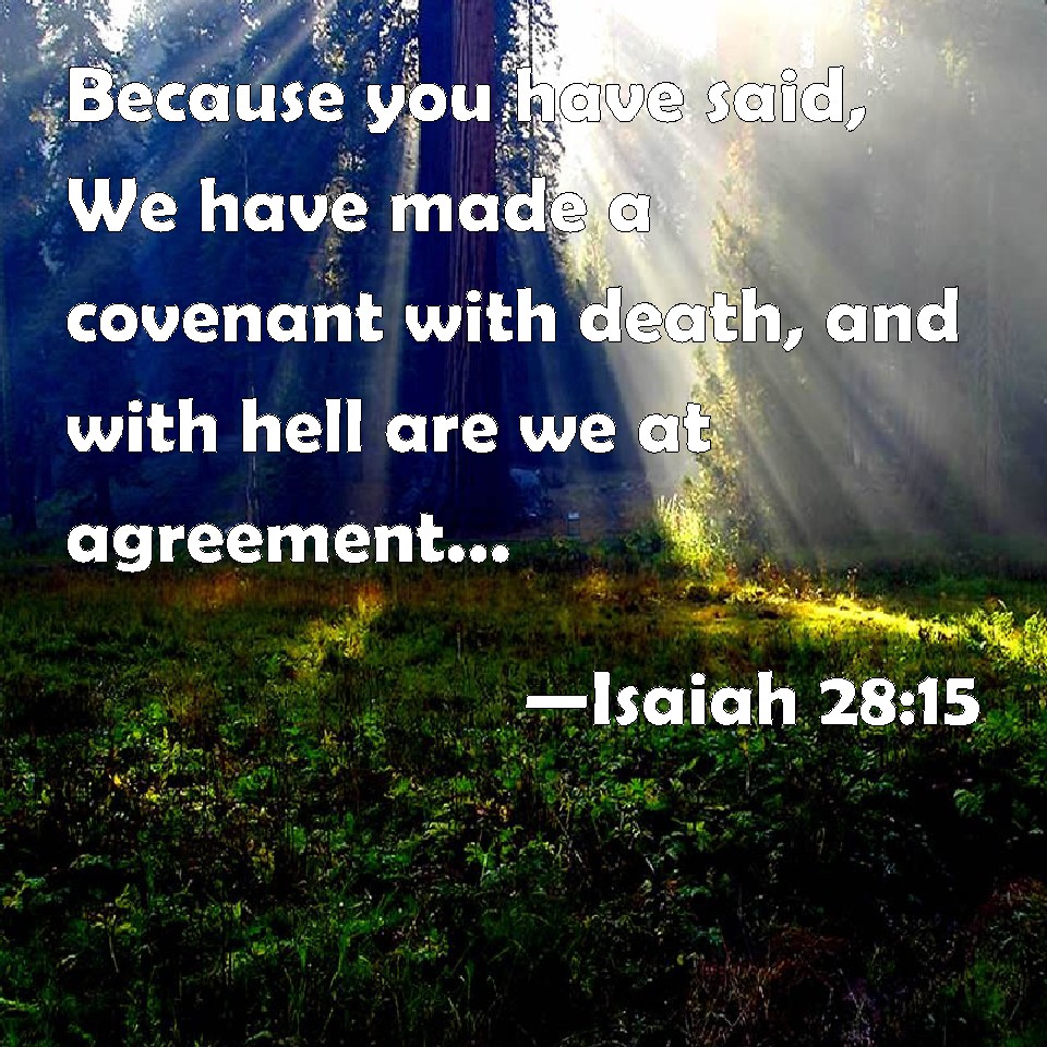 Choose a Background Isaiah 28:15 Because you have said, We have made a covenant with death, and with hell are we at agreement; when the overflowing whip shall pass through, it shall not come to us: for we have made lies our refuge, and under falsehood have we hid ourselves: KJV: Because ye have said, We have made a covenant with death, and with hell are we at agreement; when the overflowing scourge shall pass through, it shall not come unto us: for we have made lies our refuge, and under falsehood have we hid ourselves: DRB: For you have said : We have entered into a league with death, and we have made a covenant with hell. When the overflowing scourge shall pass through, it shall not come upon us: for we have placed our hope in lies, and by falsehood we are protected. DBT: For ye have said, We have made a covenant with death, and with Sheol have we made an agreement; when the overflowing scourge shall pass through, it shall not come unto us; for we have made lies our refuge, and under falsehood have we hid ourselves. ERV: Because ye have said, We have made a covenant with death, and with hell are we at agreement; when the overflowing scourge shall pass through, it shall not come unto us; for we have made lies our refuge, and under falsehood have we hid ourselves: WBT: Because ye have said, We have made a covenant with death, and with hell are we in agreement; when the overflowing scourge shall pass through, it shall not reach us: for we have made lies our refuge, and under falsehood have we hid ourselves: WEB: "Because you have said, 'We have made a covenant with death, and with Sheol are we in agreement. When the overflowing scourge passes through, it won't come to us; for we have made lies our refuge, and we have hidden ourselves under falsehood.'" YLT: Because ye have said: 'We have made a covenant with death, And with Sheol we have made a provision, An overflowing scourge, when it passeth over, Doth not meet us, Though we have made a lie our refuge, And in falsehood have been hidden.'Links Isaiah 28:15 NIV • Isaiah 28:15 NLT • Isaiah 28:15 ESV • Isaiah 28:15 NASB • Isaiah 28:15 KJV • Isaiah 28:15 Interlinear • Isaiah 28:15 Commentaries • Isaiah 28:15 Parallel Texts • Isaiah 28:15 Bible Apps • Isaiah 28:15 Parallel • Bible Hub |