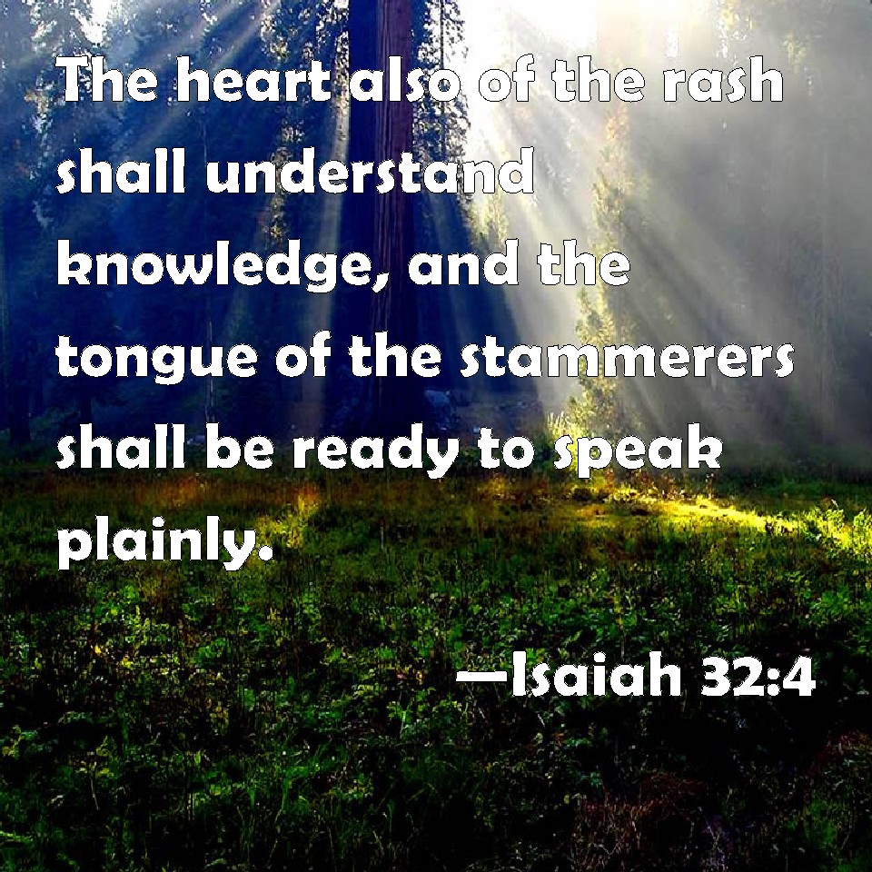 Isaiah 32:4 The heart also of the rash shall understand knowledge, and the tongue of the stammerers shall be ready to speak plainly.
