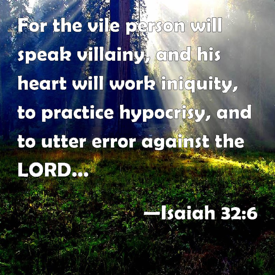 Choose a Background Isaiah 32:6 For the vile person will speak villainy, and his heart will work iniquity, to practice hypocrisy, and to utter error against the LORD, to make empty the soul of the hungry, and he will cause the drink of the thirsty to fail. KJV: For the vile person will speak villany, and his heart will work iniquity, to practise hypocrisy, and to utter error against the LORD, to make empty the soul of the hungry, and he will cause the drink of the thirsty to fail. DRB: For the fool will speak foolish things, and his heart will work iniquity, to practise hypocrisy, and speak to the Lord deceitfully, and to make empty the soul of the hungry, and take away drink from the thirsty. DBT: for the vile man will speak villainy, and his heart will work iniquity, to practise hypocrisy, and to utter error against Jehovah, to make empty the soul of the hungry, and to cause the drink of the thirsty to fail. ERV: For the vile person will speak villany, and his heart will work iniquity, to practise profaneness, and to utter error against the LORD, to make empty the soul of the hungry, and to cause the drink of the thirsty to fail. WBT: For the vile person will speak villainy, and his heart will work iniquity, to practice hypocrisy, and to utter error against the LORD, to make empty the soul of the hungry; and he will cause the drink of the thirsty to fail. WEB: For the fool will speak folly, and his heart will work iniquity, to practice profanity, and to utter error against Yahweh, To make empty the soul of the hungry, and to cause the drink of the thirsty to fail. YLT: For a fool speaketh folly, And his heart doth iniquity, to do profanity, And to speak concerning Jehovah error, To empty the soul of the hungry, Yea, drink of the thirsty he causeth to lack.Links Isaiah 32:6 NIV • Isaiah 32:6 NLT • Isaiah 32:6 ESV • Isaiah 32:6 NASB • Isaiah 32:6 KJV • Isaiah 32:6 Interlinear • Isaiah 32:6 Commentaries • Isaiah 32:6 Parallel Texts • Isaiah 32:6 Bible Apps • Isaiah 32:6 Parallel • Bible Hub |