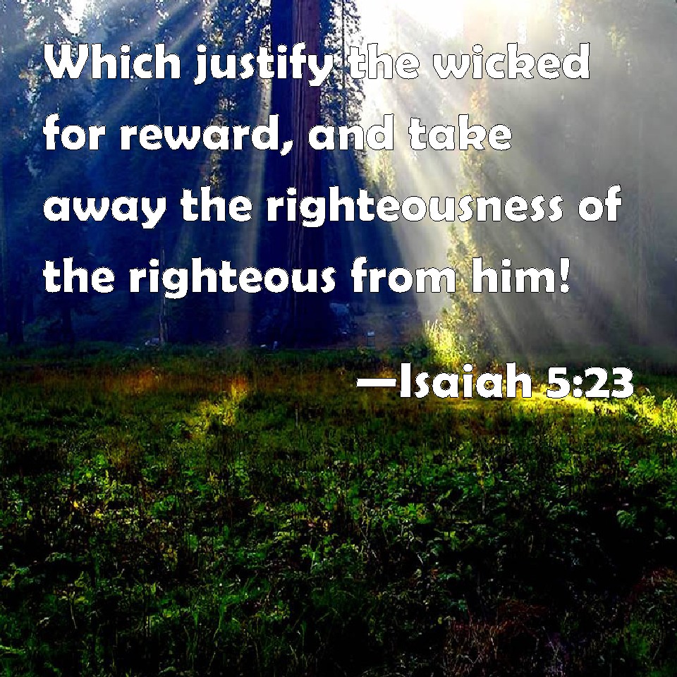 Isaiah 5:23 Which justify the wicked for reward, and take away the righteousness of the righteous from him!
