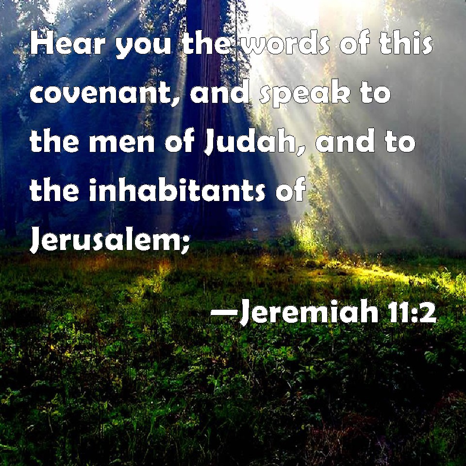 Choose a Background Jeremiah 11:2 Hear you the words of this covenant, and speak to the men of Judah, and to the inhabitants of Jerusalem; KJV: Hear ye the words of this covenant, and speak unto the men of Judah, and to the inhabitants of Jerusalem; DRB: Hear ye the words of this covenant, and speak to the men of Juda, and to the inhabitants of Jerusalem, DBT: Hear ye the words of this covenant; and speak ye unto the men of Judah, and to the inhabitants of Jerusalem. ERV: Hear ye the words of this covenant, and speak unto the men of Judah, and to the inhabitants of Jerusalem; WBT: Hear ye the words of this covenant, and speak to the men of Judah, and to the inhabitants of Jerusalem; WEB: Hear the words of this covenant, and speak to the men of Judah, and to the inhabitants of Jerusalem; YLT: 'Hear ye the words of this covenant, and ye have spoken unto the men of Judah, and unto the inhabitants of Jerusalem,Links Jeremiah 11:2 NIV • Jeremiah 11:2 NLT • Jeremiah 11:2 ESV • Jeremiah 11:2 NASB • Jeremiah 11:2 KJV • Jeremiah 11:2 Interlinear • Jeremiah 11:2 Commentaries • Jeremiah 11:2 Parallel Texts • Jeremiah 11:2 Bible Apps • Jeremiah 11:2 Parallel • Bible Hub |