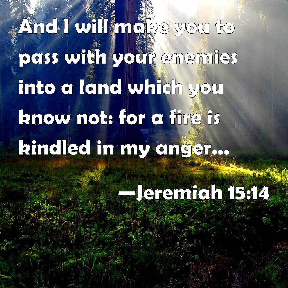 Jeremiah 15:14 And I will make you to pass with your enemies into a land which you know not: for a fire is kindled in my anger, which shall burn on you.