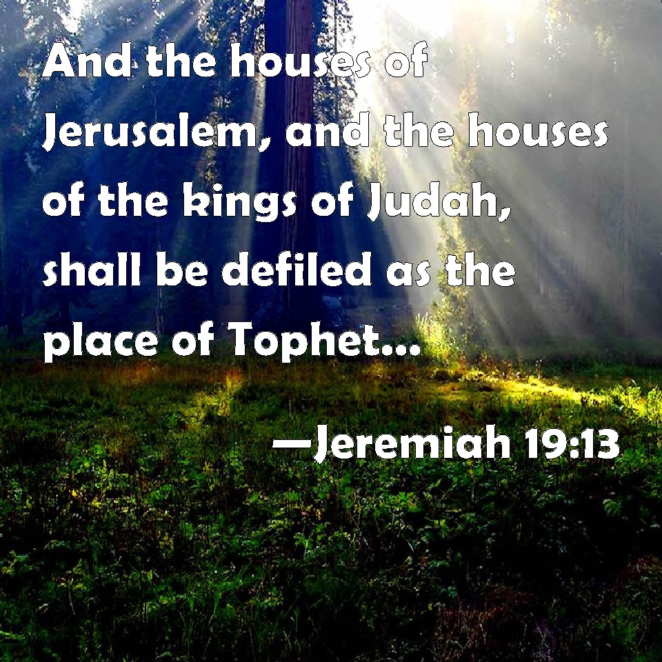 WBT:  And the houses of Jerusalem, and the houses of the kings of Judah, shall be defiled as the place of Tophet, because of all the houses upon whose roofs they have burned incense to all the host of heaven, and have poured out drink-offerings to other gods.