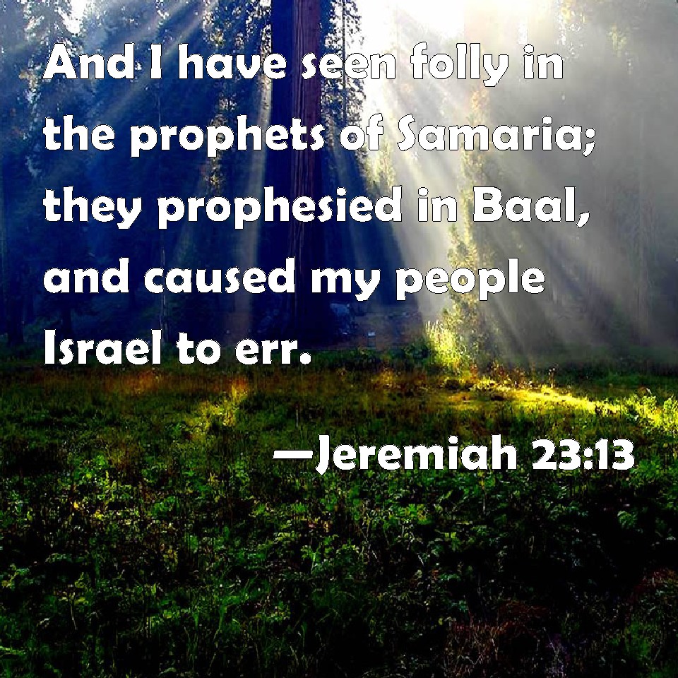 Jeremiah 23:13 And I have seen folly in the prophets of Samaria; they prophesied in Baal, and caused my people Israel to err.