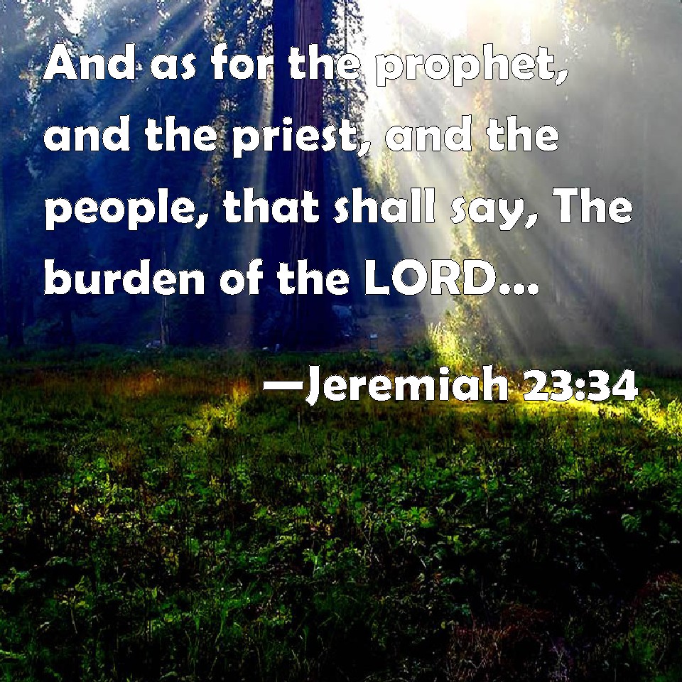 Choose a Background Jeremiah 23:34 And as for the prophet, and the priest, and the people, that shall say, The burden of the LORD, I will even punish that man and his house. KJV: And as for the prophet, and the priest, and the people, that shall say, The burden of the LORD, I will even punish that man and his house. DRB: And as for the prophet, and the priest, and the people that shall say: The burden of the Lord: I will visit upon that man, and upon his house. DBT: And as for the prophet, and the priest, and the people, that shall say, The burden of Jehovah, I will even punish that man and his house. ERV: And as for the prophet, and the priest, and the people, that shall say, The burden of the LORD, I will even punish that man and his house. WBT: And as for the prophet, and the priest, and the people that shall say, The burden of the LORD, I will even punish that man and his house. WEB: As for the prophet, and the priest, and the people, who shall say, The burden of Yahweh, I will even punish that man and his house. YLT: And the prophet, and the priest, and the people, That saith, The burden of Jehovah, I have seen after that man, and after his house.Links Jeremiah 23:34 NIV • Jeremiah 23:34 NLT • Jeremiah 23:34 ESV • Jeremiah 23:34 NASB • Jeremiah 23:34 KJV • Jeremiah 23:34 Interlinear • Jeremiah 23:34 Commentaries • Jeremiah 23:34 Parallel Texts • Jeremiah 23:34 Bible Apps • Jeremiah 23:34 Parallel • Bible Hub |