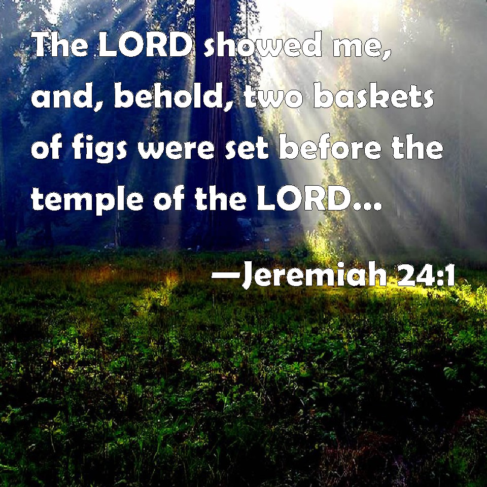 Choose a Background Jeremiah 24:1 The LORD showed me, and, behold, two baskets of figs were set before the temple of the LORD, after that Nebuchadrezzar king of Babylon had carried away captive Jeconiah the son of Jehoiakim king of Judah, and the princes of Judah, with the carpenters and smiths, from Jerusalem, and had brought them to Babylon. KJV: The LORD shewed me, and, behold, two baskets of figs were set before the temple of the LORD, after that Nebuchadrezzar king of Babylon had carried away captive Jeconiah the son of Jehoiakim king of Judah, and the princes of Judah, with the carpenters and smiths, from Jerusalem, and had brought them to Babylon. DRB: The Lord shewed me: and behold two baskets full of figs, set before the temple of the Lord: after that Nabuchodonosor king of Babylon had carried away Jechonias the son of Joakim the king of Juda, and his chief men, and the craftsmen, and engravers of Jerusalem, and had brought them to Babylon. DBT: Jehovah shewed me, and behold, two baskets of figs, set before the temple of Jehovah, after that Nebuchadrezzar king of Babylon had carried away captive from Jerusalem, Jeconiah the son of Jehoiakim, the king of Judah, and the princes of Judah, and the craftsmen and smiths, and had brought them to Babylon. ERV: The LORD shewed me, and, behold, two baskets of figs set before the temple of the LORD; after that Nebuchadrezzar king of Babylon had carried away captive Jeconiah the son of Jehoiakim, king of Judah, and the princes of Judah, with the craftsmen and smiths, from Jerusalem, and had brought them to Babylon. WBT: The LORD showed me, and behold, two baskets of figs were set before the temple of the LORD, after Nebuchadrezzar king of Babylon had carried away captive Jeconiah the son of Jehoiakim, king of Judah, and the princes of Judah, with the carpenters and smiths, from Jerusalem, and had brought them to Babylon. WEB: Yahweh showed me, and behold, two baskets of figs set before the temple of Yahweh, after that Nebuchadnezzar king of Babylon had carried away captive Jeconiah the son of Jehoiakim, king of Judah, and the princes of Judah, with the craftsmen and smiths, from Jerusalem, and had brought them to Babylon. YLT: Jehovah hath shewed me, and lo, two baskets of figs, appointed before the temple of Jehovah, — after the removing by Nebuchadrezzar king of Babylon, of Jeconiah, son of Jehoiakim king of Judah, and the heads of Judah, and the artisan, and the smith, from Jerusalem, when he bringeth them into Babylon — Links Jeremiah 24:1 NIV • Jeremiah 24:1 NLT • Jeremiah 24:1 ESV • Jeremiah 24:1 NASB • Jeremiah 24:1 KJV • Jeremiah 24:1 Interlinear • Jeremiah 24:1 Commentaries • Jeremiah 24:1 Parallel Texts • Jeremiah 24:1 Bible Apps • Jeremiah 24:1 Parallel • Bible Hub |