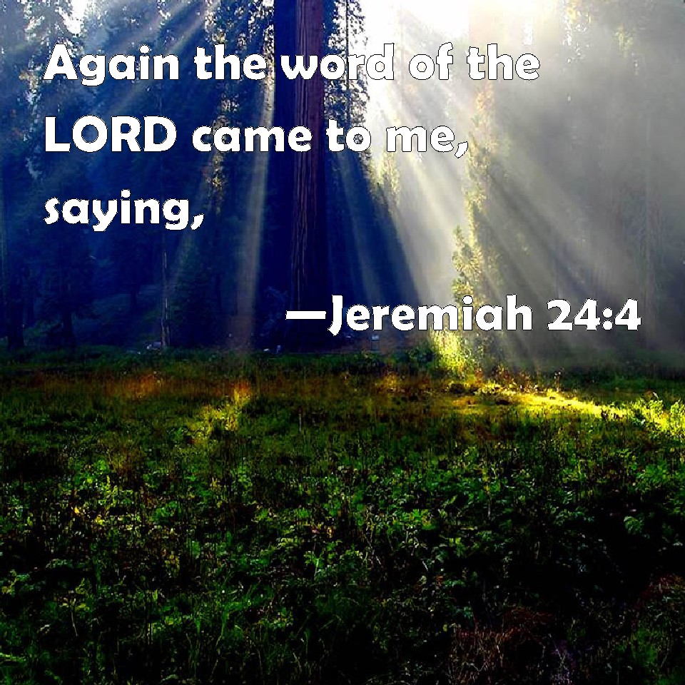 Choose a Background Jeremiah 24:4 Again the word of the LORD came to me, saying, KJV: Again the word of the LORD came unto me, saying, DRB: And the word of the Lord came to me, saying: DBT: And the word of Jehovah came unto me, saying, ERV: And the word of the LORD came unto me, saying, WBT: Again the word of the LORD came to me, saying, WEB: The word of Yahweh came to me, saying, YLT: And there is a word of Jehovah unto me, saying:Links Jeremiah 24:4 NIV • Jeremiah 24:4 NLT • Jeremiah 24:4 ESV • Jeremiah 24:4 NASB • Jeremiah 24:4 KJV • Jeremiah 24:4 Interlinear • Jeremiah 24:4 Commentaries • Jeremiah 24:4 Parallel Texts • Jeremiah 24:4 Bible Apps • Jeremiah 24:4 Parallel • Bible Hub |