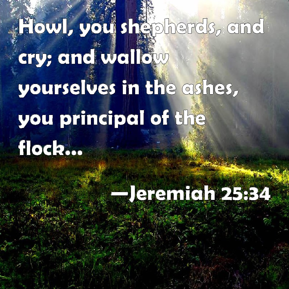 Choose a Background Jeremiah 25:34 Howl, you shepherds, and cry; and wallow yourselves in the ashes, you principal of the flock: for the days of your slaughter and of your dispersions are accomplished; and you shall fall like a pleasant vessel. KJV: Howl, ye shepherds, and cry; and wallow yourselves in the ashes, ye principal of the flock: for the days of your slaughter and of your dispersions are accomplished; and ye shall fall like a pleasant vessel. DRB: Howl, ye shepherds, and cry: and sprinkle yourselves with ashes, ye leaders of the flock: for the days of your slaughter and your dispersion are accomplished, and you shall fall like precious vessels. DBT: Howl, ye shepherds, and cry; and wallow yourselves in the dust, noble ones of the flock: for the days of your slaughter are accomplished, and I will disperse you; and ye shall fall like a precious vessel. ERV: Howl, ye shepherds, and cry; and wallow yourselves in ashes, ye principal of the flock: for the days of your slaughter are fully come, and I will break you in pieces, and ye shall fall like a pleasant vessel. WBT: Howl, ye shepherds, and cry; and wallow yourselves in the ashes, ye principal of the flock: for the days of your slaughter and of your dispersions are accomplished; and ye shall fall like a pleasant vessel. WEB: Wail, you shepherds, and cry; and wallow [in ashes], you principal of the flock; for the days of your slaughter and of your dispersions are fully come, and you shall fall like a goodly vessel. YLT: Howl, ye shepherds, and cry, And roll yourselves, ye honourable of the flock, For full have been your days, For slaughtering, and for your scatterings, And ye have fallen as a desirable vessel.Links Jeremiah 25:34 NIV • Jeremiah 25:34 NLT • Jeremiah 25:34 ESV • Jeremiah 25:34 NASB • Jeremiah 25:34 KJV • Jeremiah 25:34 Interlinear • Jeremiah 25:34 Commentaries • Jeremiah 25:34 Parallel Texts • Jeremiah 25:34 Bible Apps • Jeremiah 25:34 Parallel • Bible Hub |