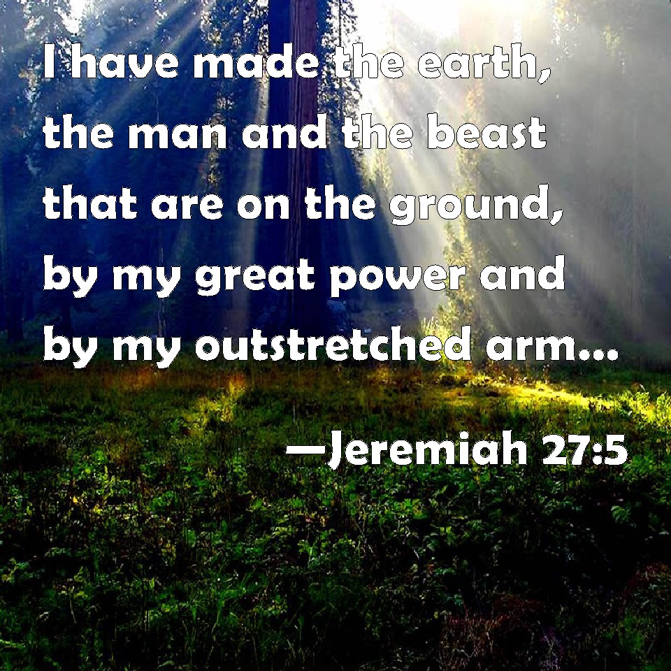 Jeremiah 27:5 I have made the earth, the man and the beast that are on the ground, by my great power and by my outstretched arm, and have given it to whom it seemed meet to me.