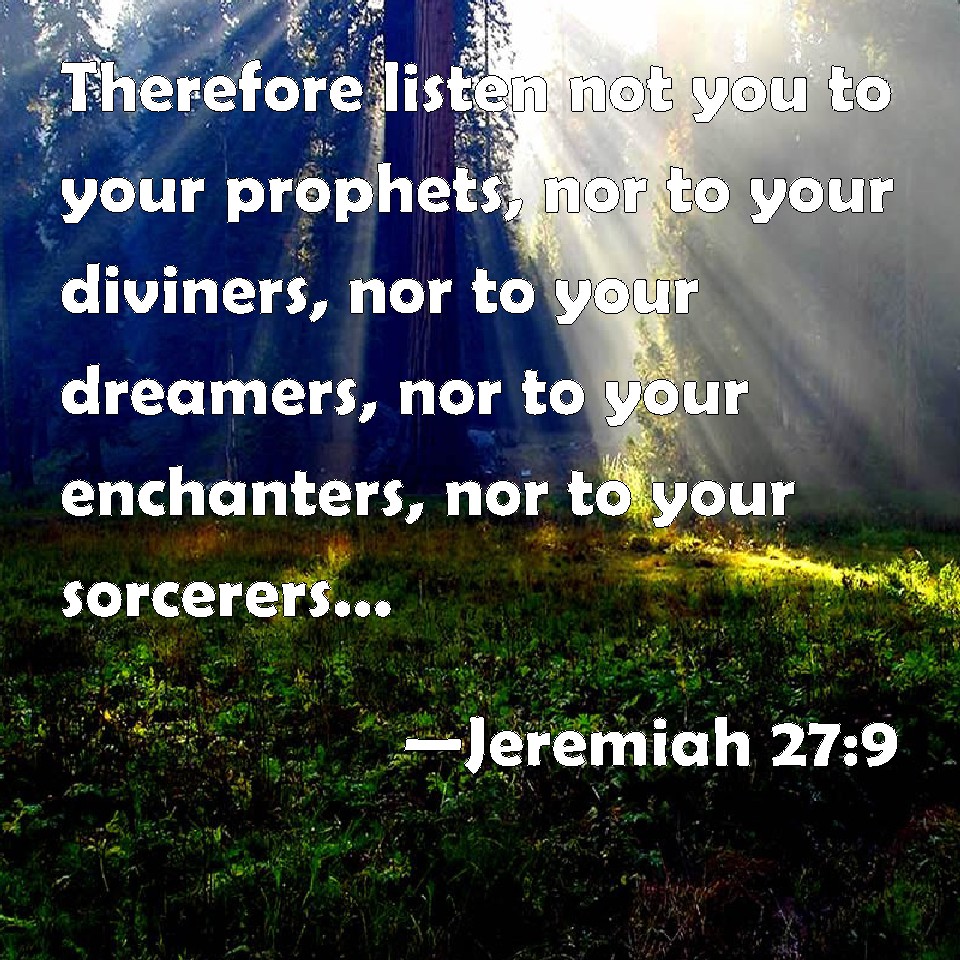 Jeremiah 27:9 Therefore listen not you to your prophets, nor to your diviners, nor to your dreamers, nor to your enchanters, nor to your sorcerers, which speak to you, saying, You shall not serve the king of Babylon: