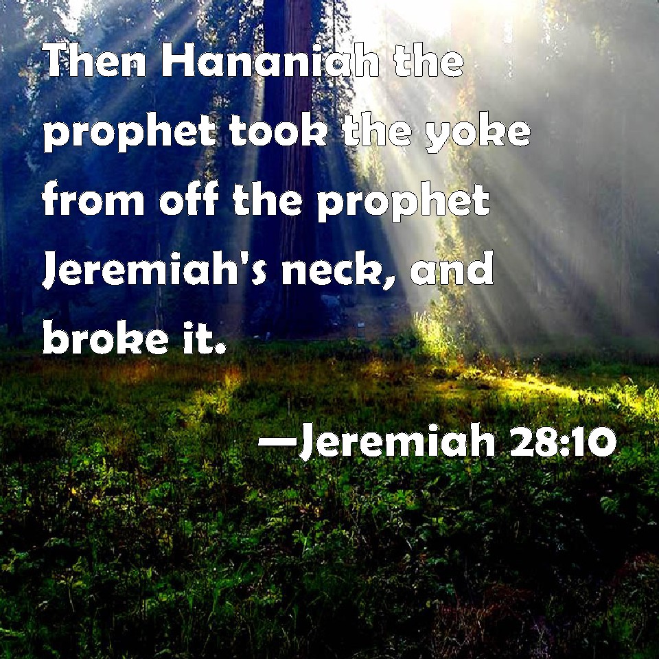 And Hananiah the prophet taketh the yoke from off the neck of Jeremiah the prophet, and breaketh it,