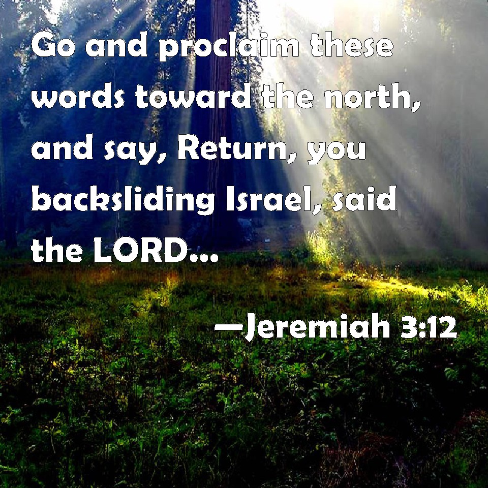 Jeremiah 3:12 Go and proclaim these words toward the north, and say, Return, you backsliding Israel, said the LORD; and I will not cause my anger to fall on you: for I am merciful, said the LORD, and I will not keep anger for ever.