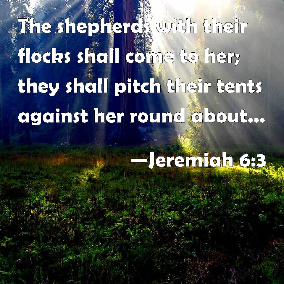 Jeremiah 6:3 The shepherds with their flocks shall come to her; they shall pitch their tents against her round about; they shall feed every one in his place.