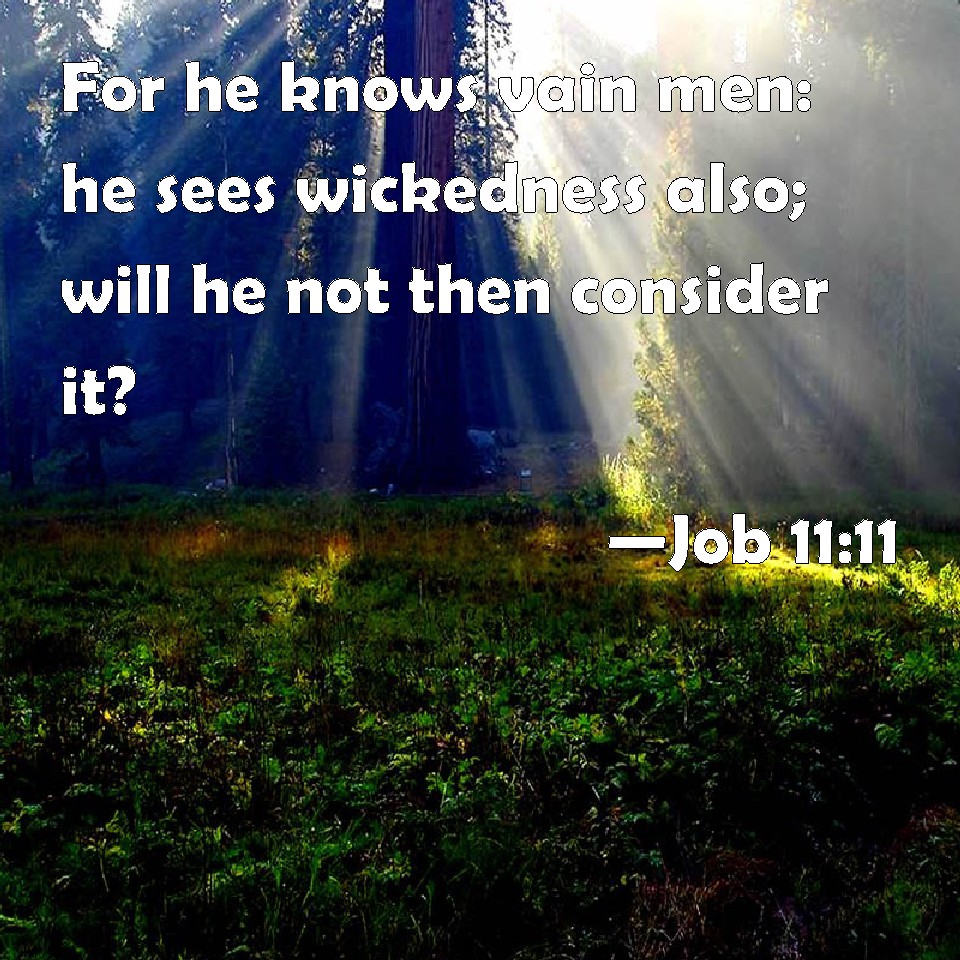 Job 11:11 For he knows vain men: he sees wickedness also; will he not then consider it?