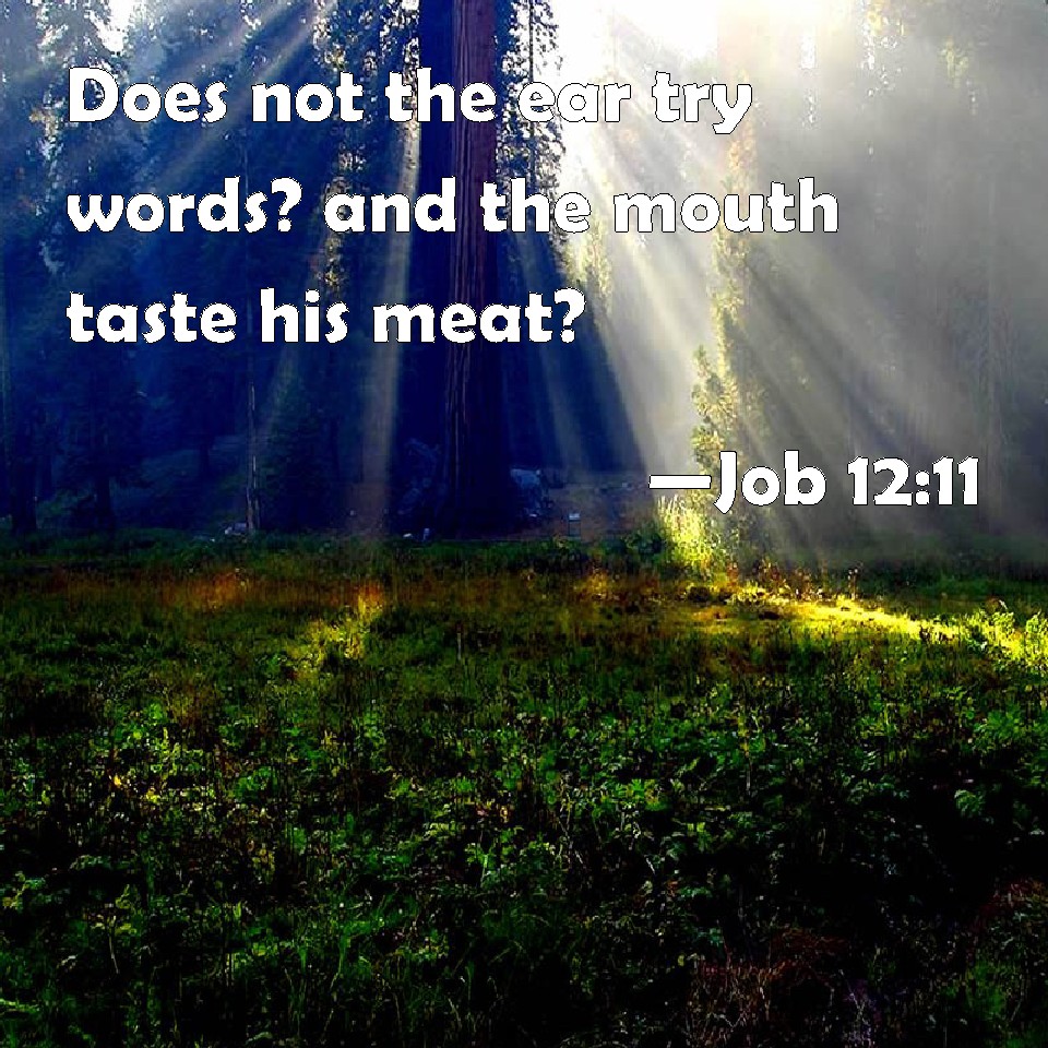 Job 12:11 Does not the ear try words? and the mouth taste his meat?