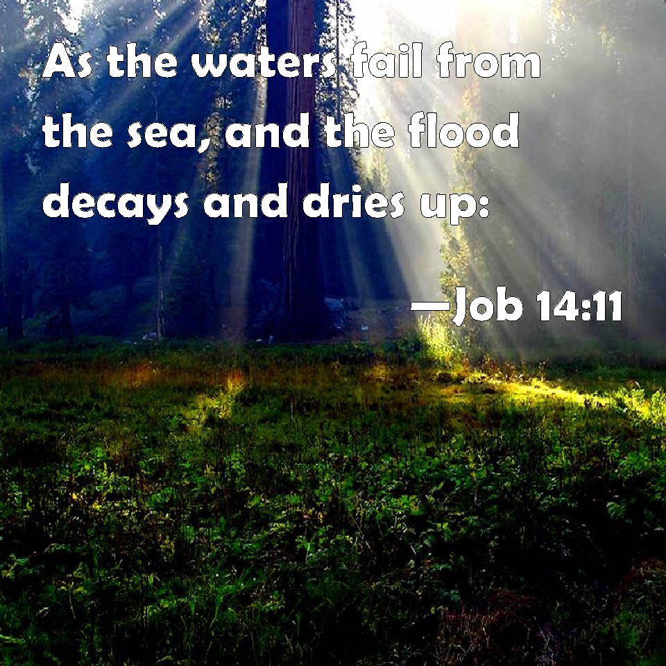 Job 14:11 As the waters fail from the sea, and the flood decays and dries up: