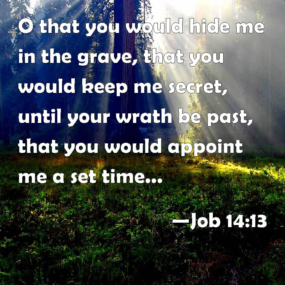 Job 14:13 O that you would hide me in the grave, that you would keep me secret, until your wrath be past, that you would appoint me a set time, and remember me!