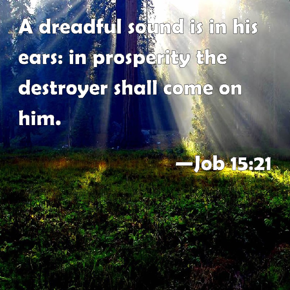 Job 15:21 A dreadful sound is in his ears: in prosperity the destroyer shall come on him.