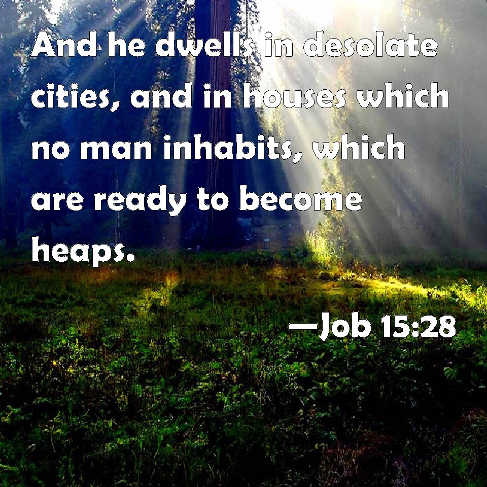 Choose a Background Job 15:28 And he dwells in desolate cities, and in houses which no man inhabits, which are ready to become heaps. KJV: And he dwelleth in desolate cities, and in houses which no man inhabiteth, which are ready to become heaps. DRB: He hath dwelt in desolate cities, and in desert houses that are reduced into heaps. DBT: And he dwelleth in desolate cities, in houses that no man inhabiteth, which are destined to become heaps. ERV: And he hath dwelt in desolate cities, in houses which no man inhabited, which were ready to become heaps. WBT: And he dwelleth in desolate cities, and in houses which no man inhabiteth, which are ready to become heaps. WEB: He has lived in desolate cities, in houses which no one inhabited, which were ready to become heaps. YLT: And he inhabiteth cities cut off, houses not dwelt in, That have been ready to become heaps.Links Job 15:28 NIV • Job 15:28 NLT • Job 15:28 ESV • Job 15:28 NASB • Job 15:28 KJV • Job 15:28 Interlinear • Job 15:28 Commentaries • Job 15:28 Parallel Texts • Job 15:28 Bible Apps • Job 15:28 Parallel • Bible Hub |