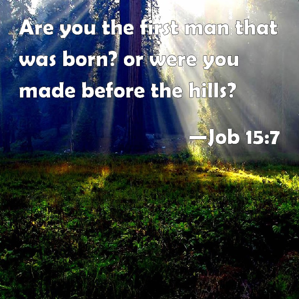 Job 15:7 Are you the first man that was born? or were you made before the hills?