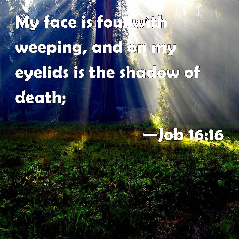 Job 16:16 My face is foul with weeping, and on my eyelids is the shadow of death;